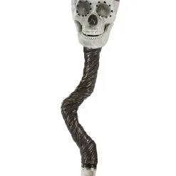 You don’t need second sight to see that this exclusively designed Witch Doctor Costume for Boys is the perfect costume for Halloween! The jacket is printed all over with a skull and bone pinstripe-style pattern with fringe detail on the lapels. The white sewn-in shirt front has a ruffleed V-neck that’s perfect for displaying the twine necklace strung with orange and black beads and plastic bones. A plastic shrunken head is sewn to the right side of the jacket – a super cool and creepy touch that will make everyone think twice before asking you to share your candy. The ankle-length pants are printed with a matching bone pinstripe and look fantastic when worn with your favorite pair of boots. Add the included top hat with its band of faux snakeskin for a truly bewitching finishing touch!Â