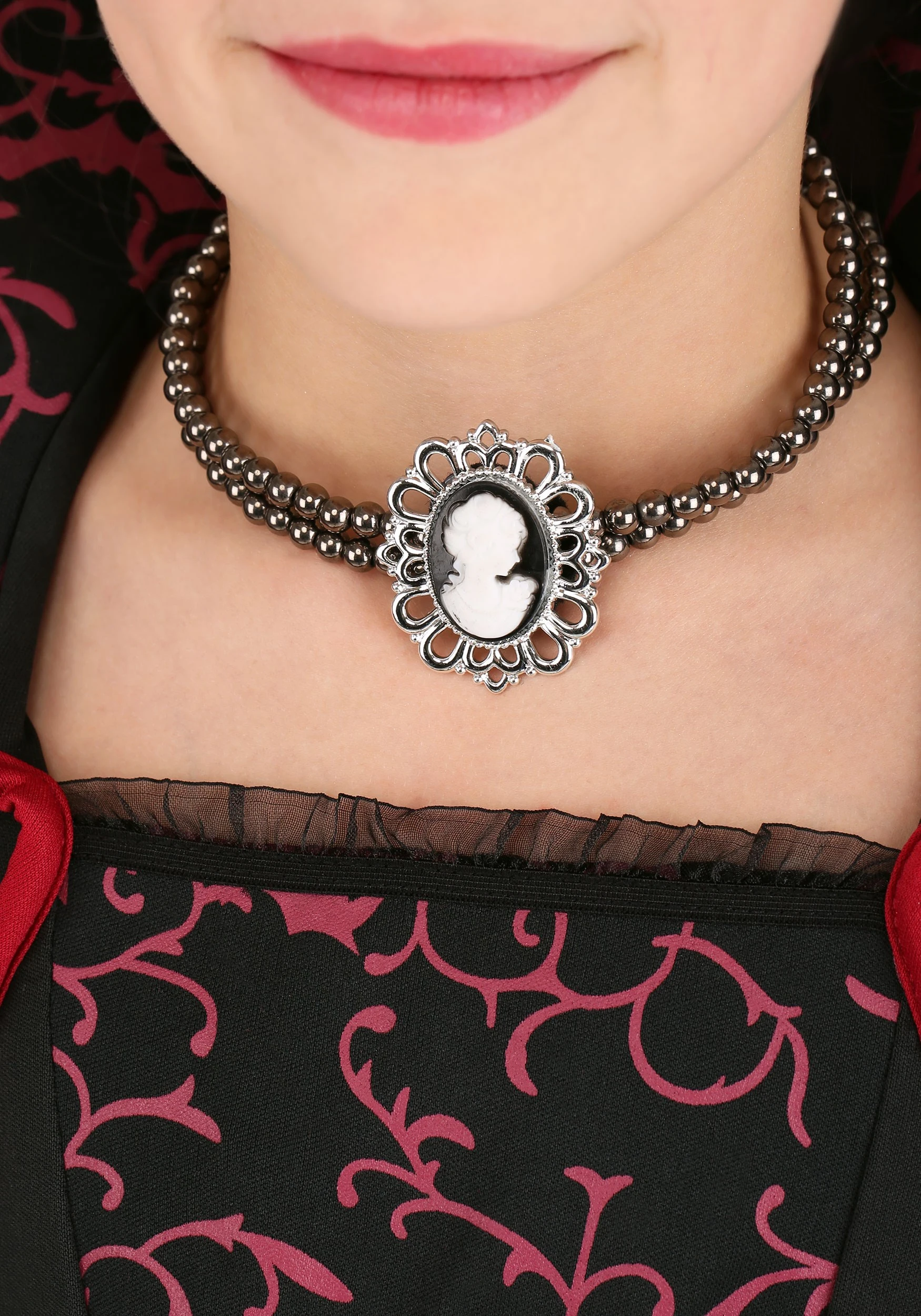 - Choker is metal beads, w/ plastic cameo at center front