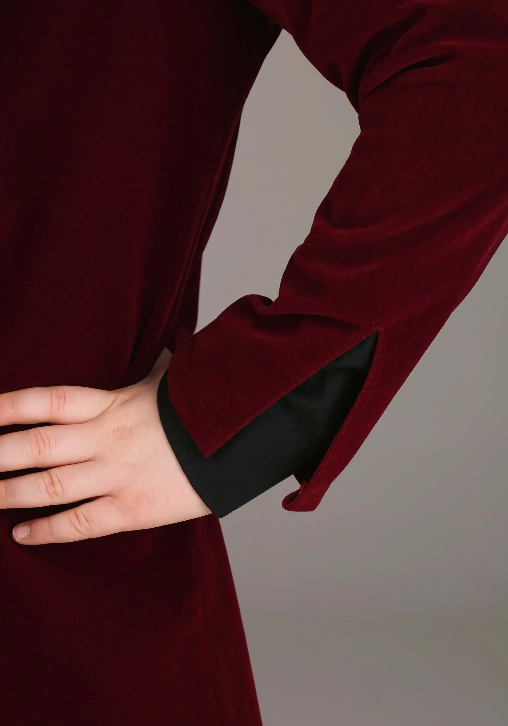 When your kid slips into this classic vampire costume, they’re sure to feel powerful and sophisticated. At least, that’s the feeling our in-house designers worked so hard to achieve! This Made by Us vampire costume features a long velvet coat with an upturned collar. A black vest and matching lace cravat are layered underneath. Match your child’s own black collared shirt and black dress pants with the items to achieve the look above.Â