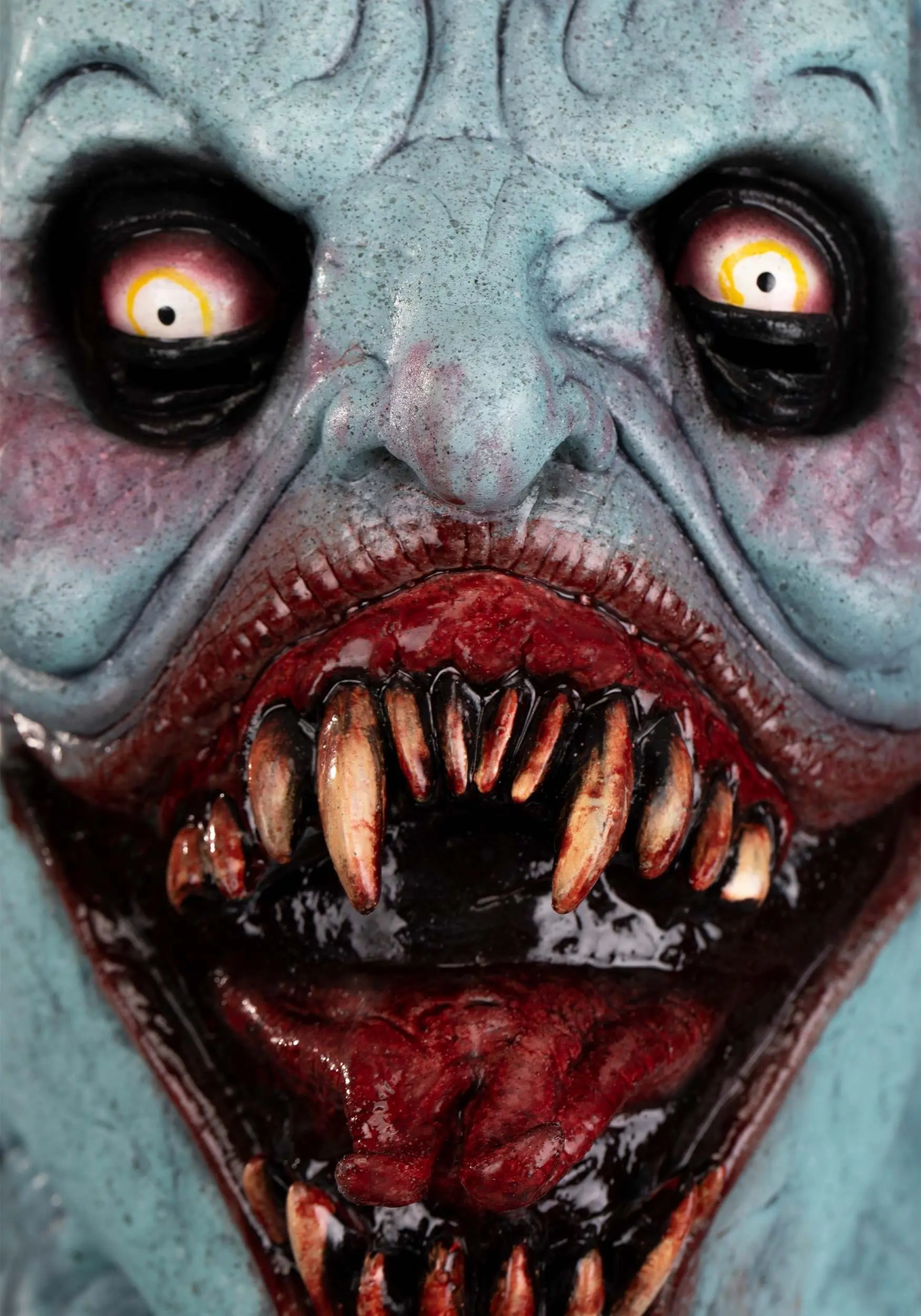 The only place you’d want to see a face this scary is at a Halloween party! Wearing a Bloodlust Mask for Adults basically makes you a shoe-in for “Most Horrifying Costume” finalist. The maks covers your entire head, neck, and chest area and resembles a creature with blueish skin, pointed ears, yellow eyes, and a bloody mouth split into a chilling grin that reveals a full set of fangs. Eye and mouth holes let you see and breathe.Â