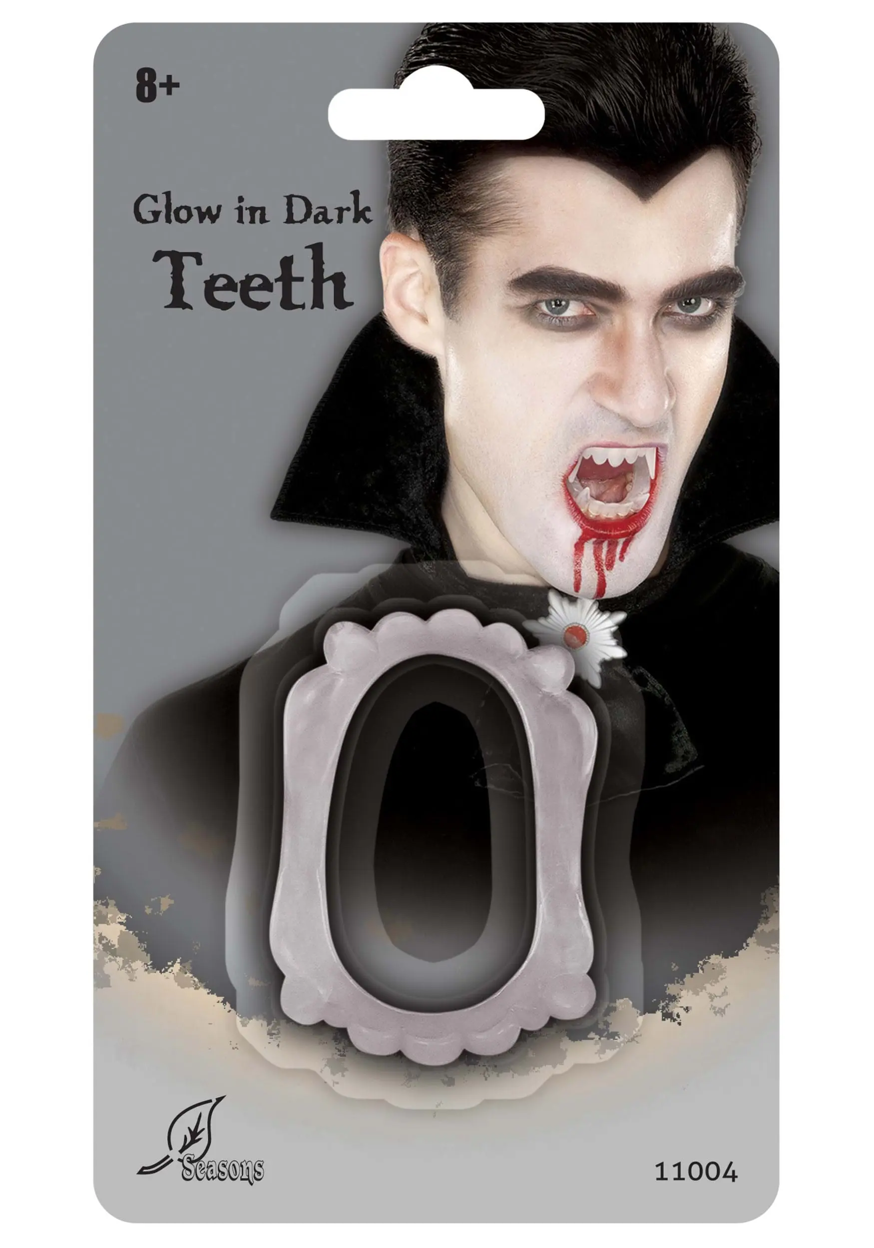 Prove your point with our exclusive Glow in the Dark Vampire Teeth Accessory! The classic costume accessory looks and wears like any other traditional set of white plastic vampire fangs, but these one-size-fits-most chompers shine when the lights go out!